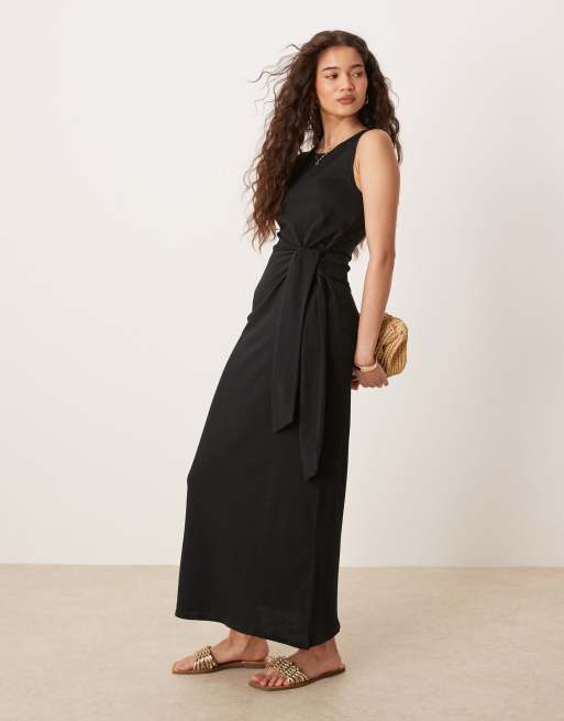 Mango - Vestito nero allacciato in vita con gonna al polpaccio