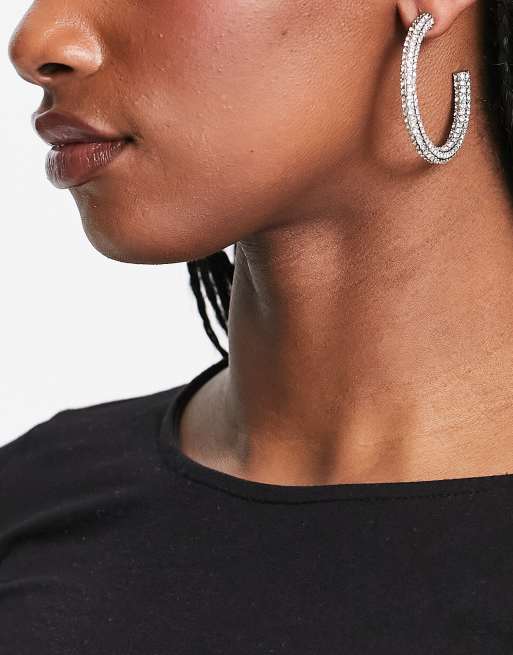 Mango x Camille - Orecchini a cerchio argentati con strass