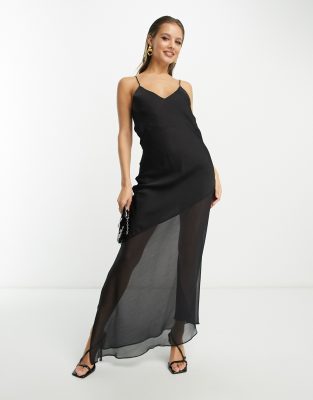 Mango x Camille - Vestito nero con scollo a V e fondo asimmetrico trasparente