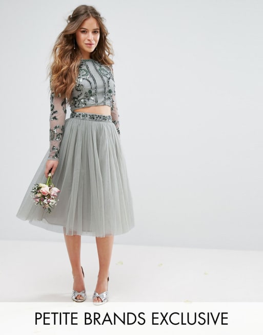 Maya Petite - Coordinato con gonna e top corto a maniche lunghe decorato