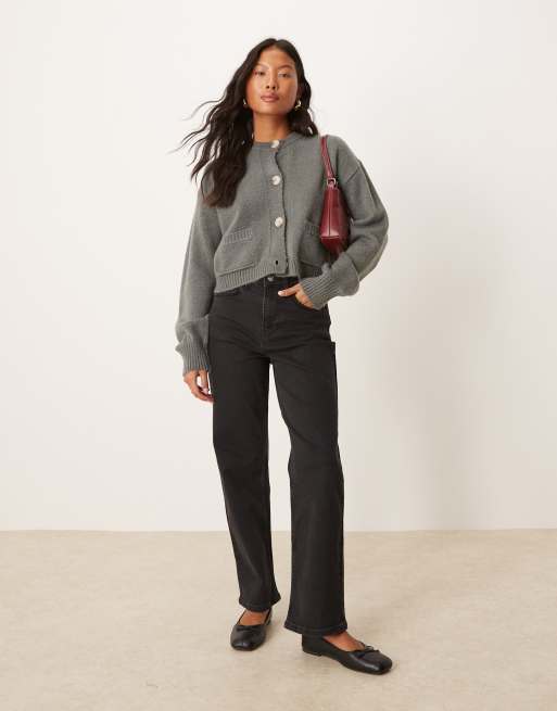 Miss Selfridge Petite - Jeans dritti nero slavato con tasche a forma di cuore