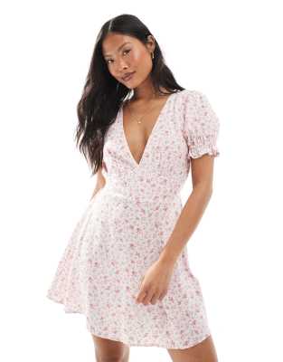 Miss Selfridge Petite - Vestito da giorno corto rosa a fiorellini con scollo a V