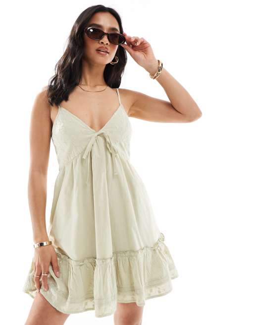 Miss Selfridge Petite - Vestito estivo corto in misto pizzo verde salvia
