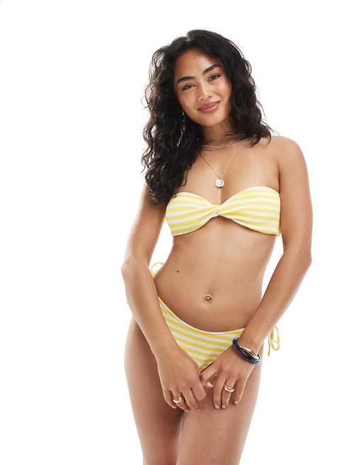 Miss Selfridge - Bikini giallo a righe testurizzato