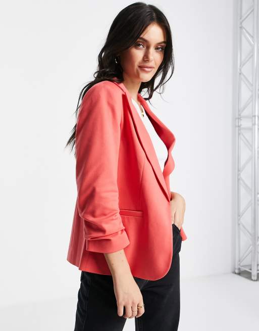 Miss Selfridge - Blazer in tessuto ponte corallo