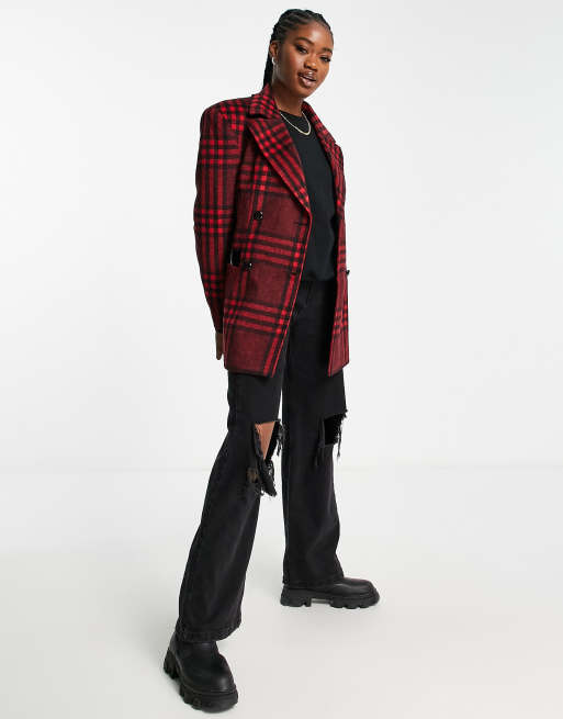 Miss Selfridge - Blazer rosso a quadri con spalle larghe
