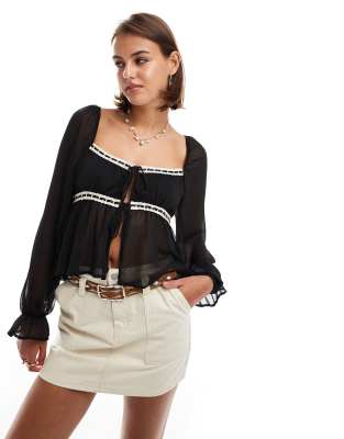 Miss Selfridge - Blusa nera in chiffon con inserti in pizzo