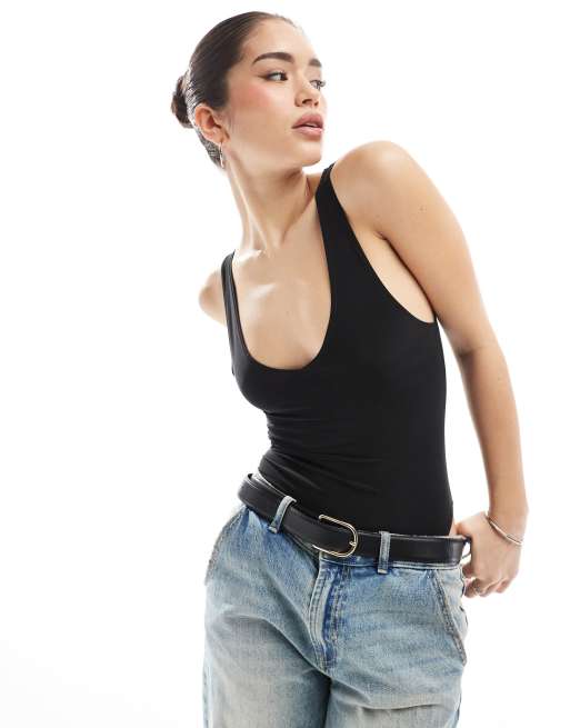Miss Selfridge - Body nero morbido al tatto con scollo a V