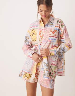 Miss Selfridge - Camicia oversize con stampa stile cartolina