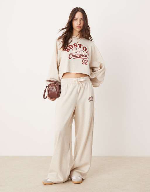 Miss Selfridge - Coordinato avena mélange con scritta "Boston"