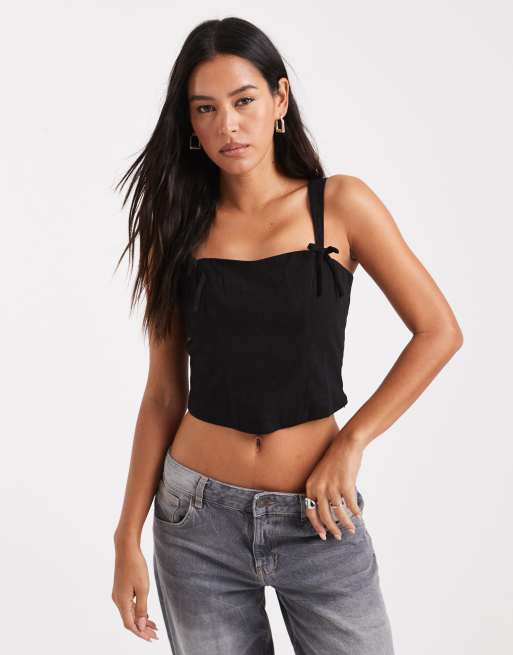 Miss Selfridge - Corsetto nero in misto lino con fiocchi