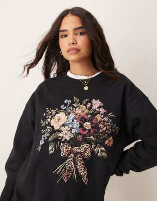 Miss Selfridge - Felpa oversize con bouquet di fiori