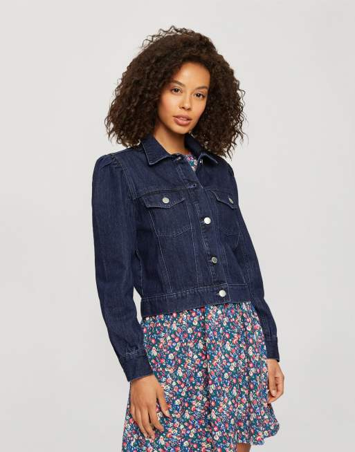 Miss Selfridge - Giacca corta blu con maniche a sbuffo