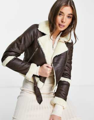 Miss Selfridge - Giacca in montone sintetico stile aviatore corta marrone