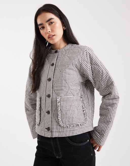 Miss Selfridge - Giacca trapuntata marrone a quadri