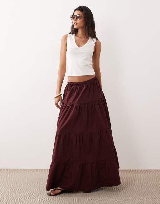 Miss Selfridge - Gonna lunga a balze in popeline color cioccolato