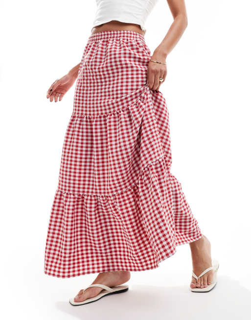 Miss Selfridge - Gonna lunga a balze rossa a quadretti