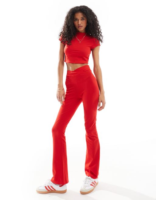 Miss Selfridge - Leggings a zampa rossi con davanti sagomato in coordinato