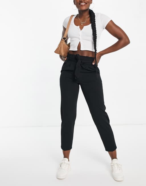 Miss Selfridge - Pantaloni in tessuto scuba con vita alta e cintura neri