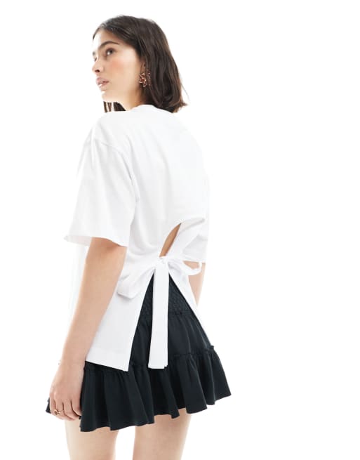 Miss Selfridge - T-shirt bianca allacciata sul retro