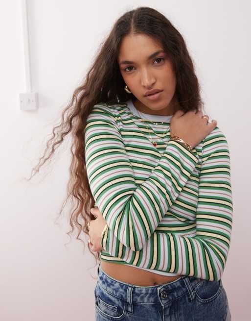 Miss Selfridge - Top a maniche lunghe blu a righe