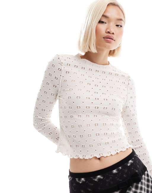 Miss Selfridge - Top a maniche lunghe color crema testurizzato