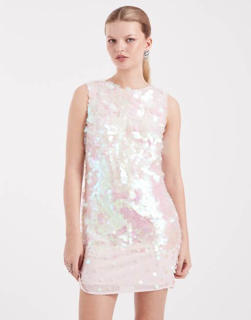Miss Selfridge - Vestito a trapezio rosa con paillettes