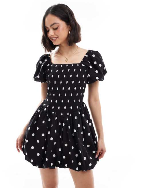 Miss Selfridge - Vestito corto a palloncino nero a pois