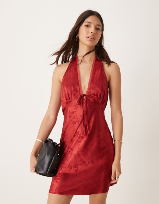 Miss Selfridge - Vestito corto allacciato al collo jacquard