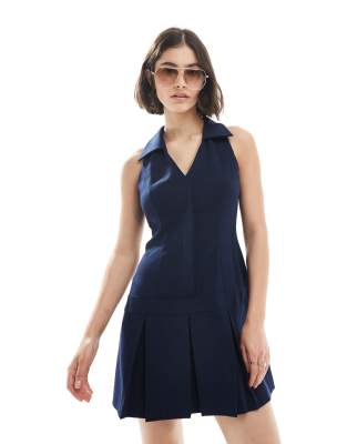 Miss Selfridge - Vestito corto allacciato al collo sartoriale blu navy