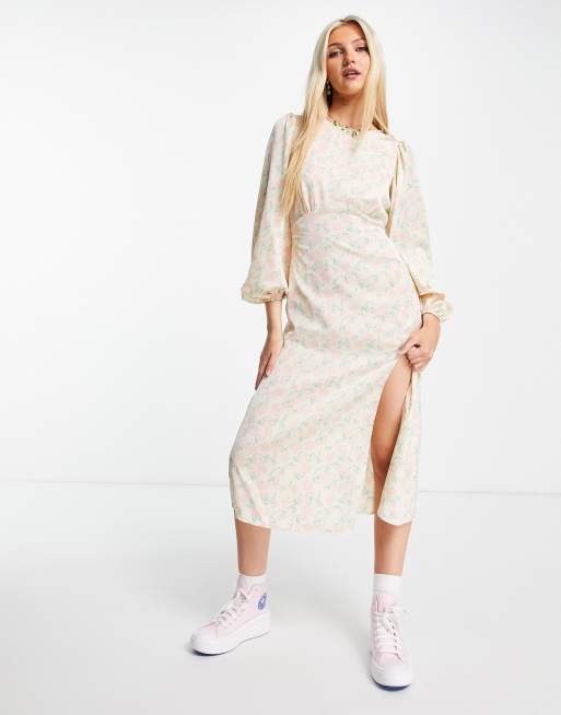 Miss Selfridge - Vestito midi in raso a fiori aperto sul retro