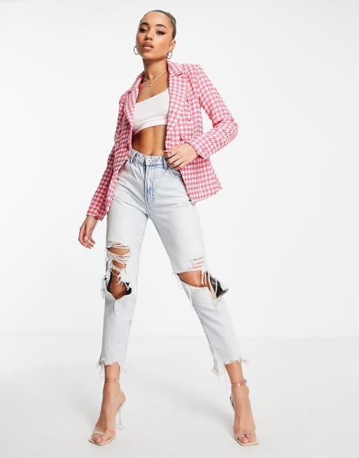 Missguided - Blazer doppiopetto in bouclé rosa in coordinato