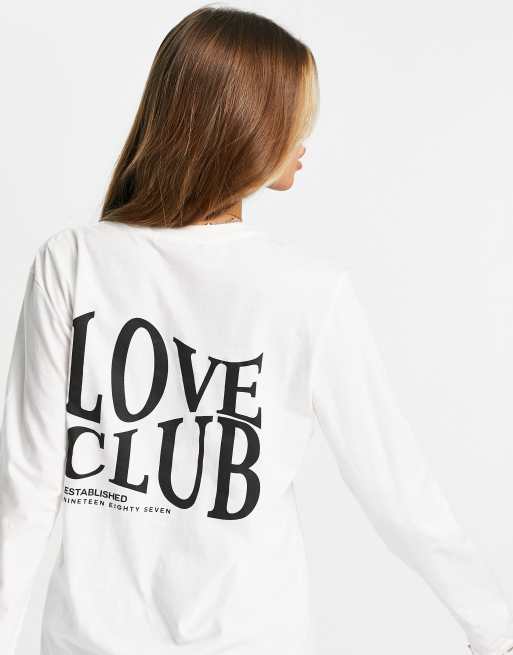 Missguided - Maglietta oversize bianca con scritta "Love Club"