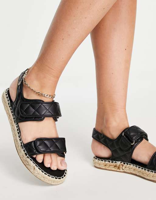 Missguided - Sandali stile espadrilles in pelle sintetica trapuntata nera