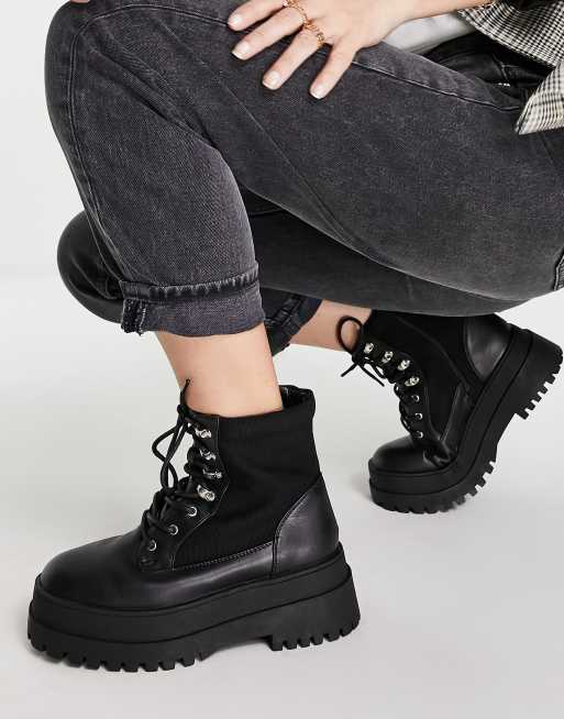 Missguided - Scarponcini da trekking con suola spessa neri