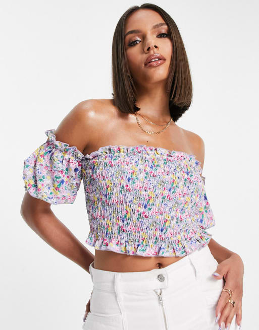 Missguided - Top alla Bardot e minigonna lilla a fiori
