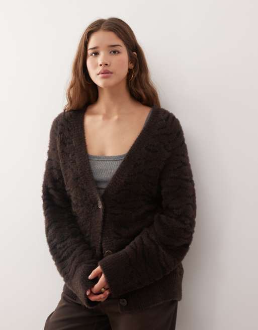 Monki - Bambi - Cardigan in maglia jacquard marrone cioccolato