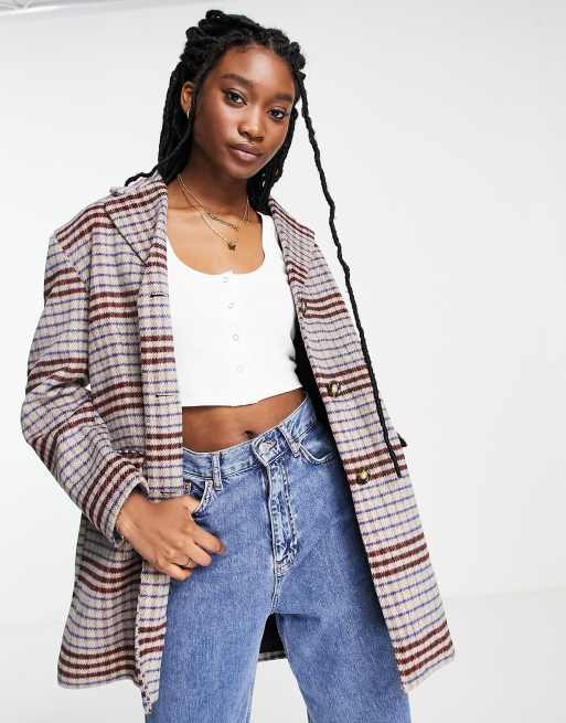 Monki - Blazer in lana bouclé marrone pied de poule