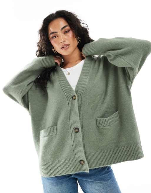 Monki - Cardigan in maglia verde chiaro con bottoni
