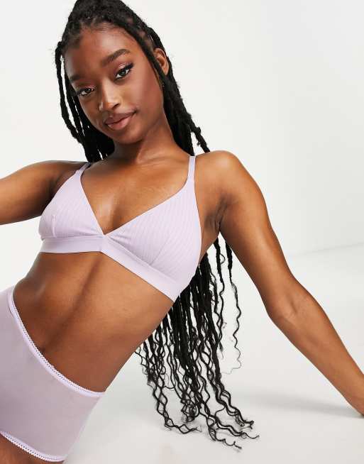 Monki - Chloe - Brassière a triangolo in cotone a coste lilla - PURPLE