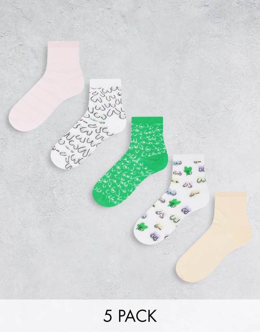 Monki - Confezione da 5 paia di calzini con stampa di seni