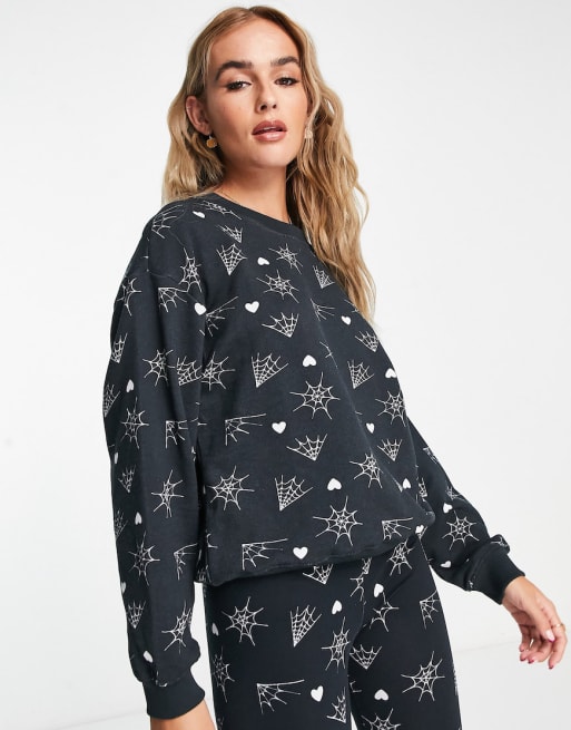 Monki - Felpa e leggings in cotone nero con ragnatele