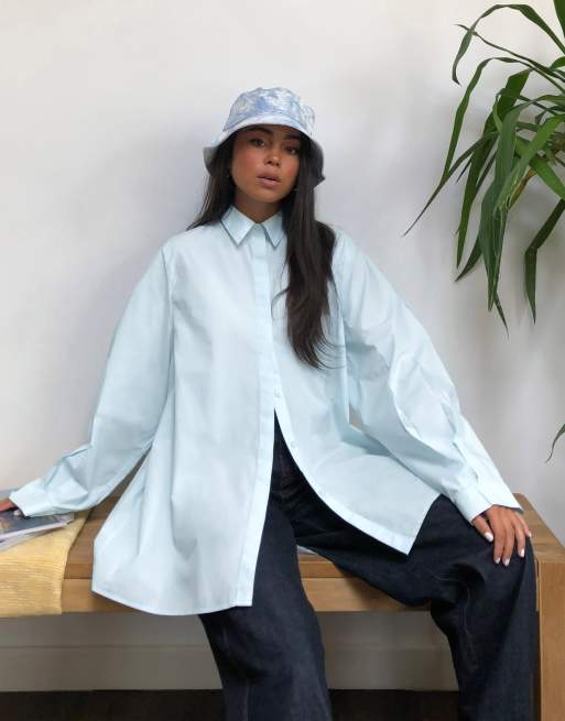 Monki - Gerri - Blusa oversize in popeline di cotone azzurro