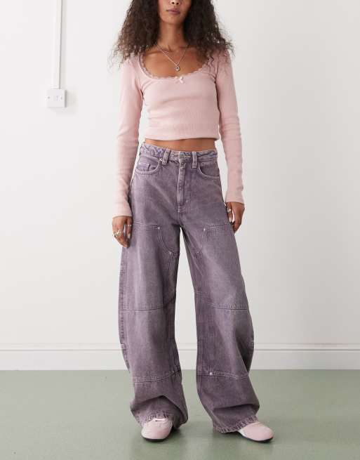 Monki - Jeans lavaggio lilla grigio con applicazione e gamba cilindrica