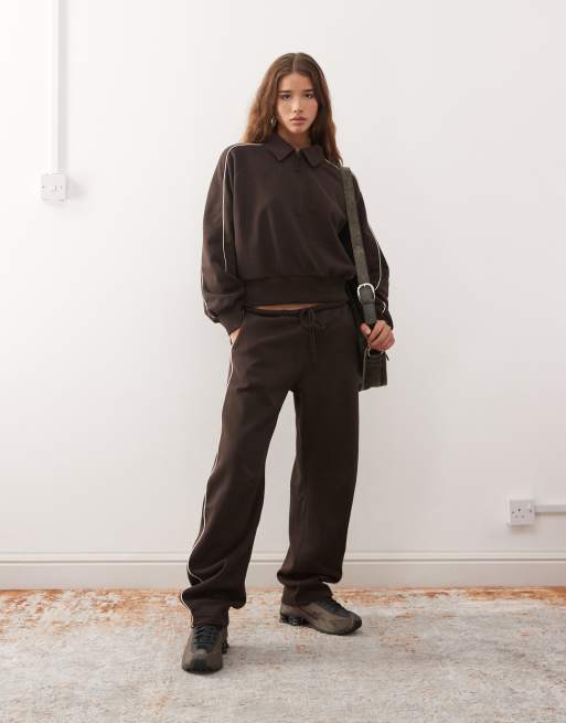 Monki - Joggers a cilindro marrone cioccolato con profili beige in coordinato
