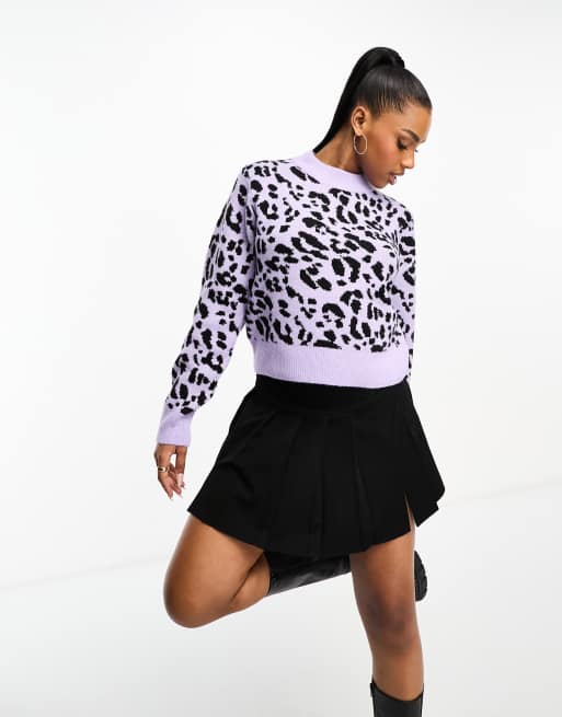 Monki - Maglione accollato in maglia leopardata