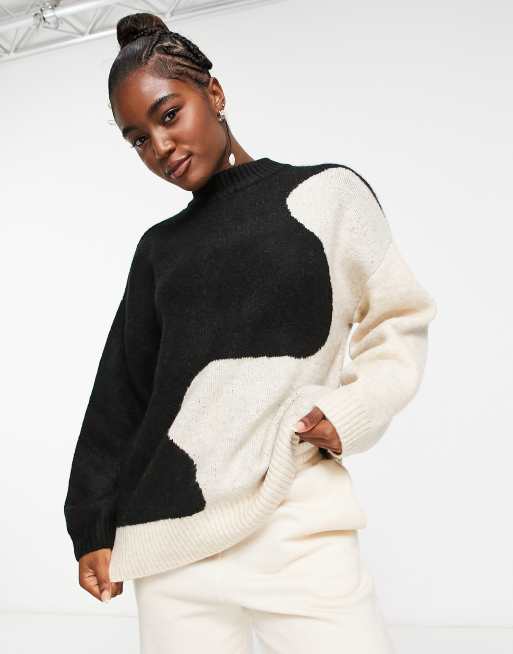 Monki - Maglione beige e nero colorblock con motivo ondulato