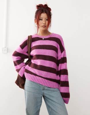 Monki - Maglione girocollo a righe rosa e bordeaux