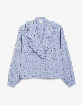 Monki - Marian - Blusa blu a pois con colletto con volant