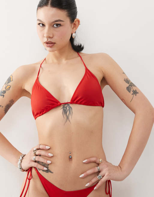 Monki - Mix and Match - Set bikini rosso scuro con allacciatura laterale
